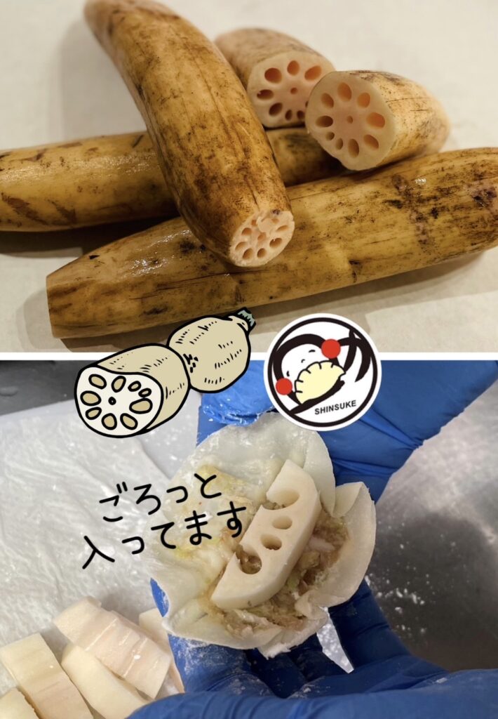 1本1本丁寧に手作業でれんこんを掘られる生産者さんの想いものせ、美味しいれんこん餃子をお届けします!